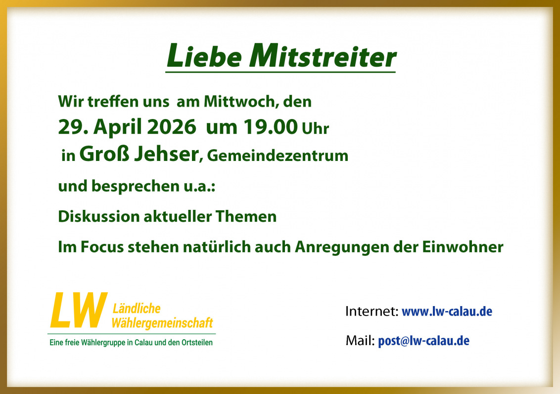 Wir freuen uns über Ihr Interesse und möchten Ihnen auf den nächsten Seiten unsere Ziele vorstellen. Hier finden Sie auch unsere Kandidaten für die Kommunalwahl 2024. Entspricht unser Programm Ihren Vorstellungen? Für Anregungen oder Interesse an einer Mitarbeit in unserer Gemeinschaft, kontaktieren Sie uns bitte.